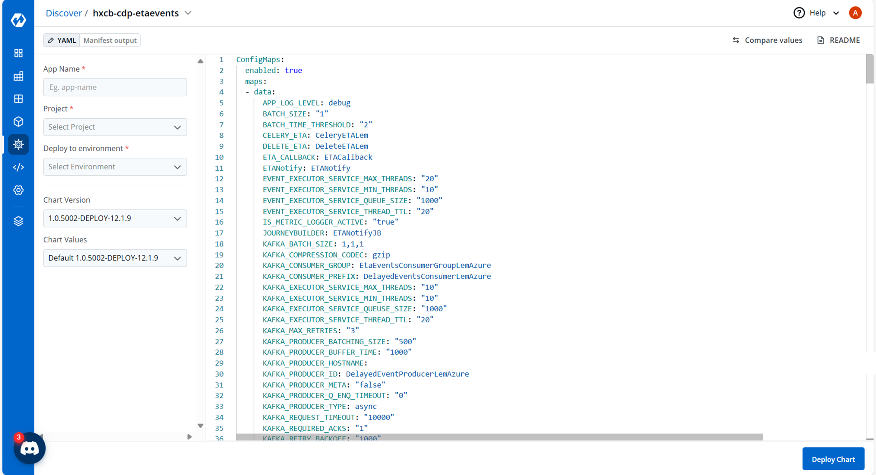 - Now, configure and deploy the cdp-etaevents charts.
