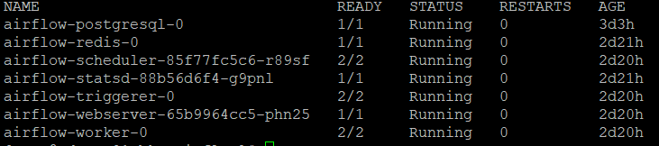kubectl get pods --namespace airflowAs a result, the output will be as shown below: