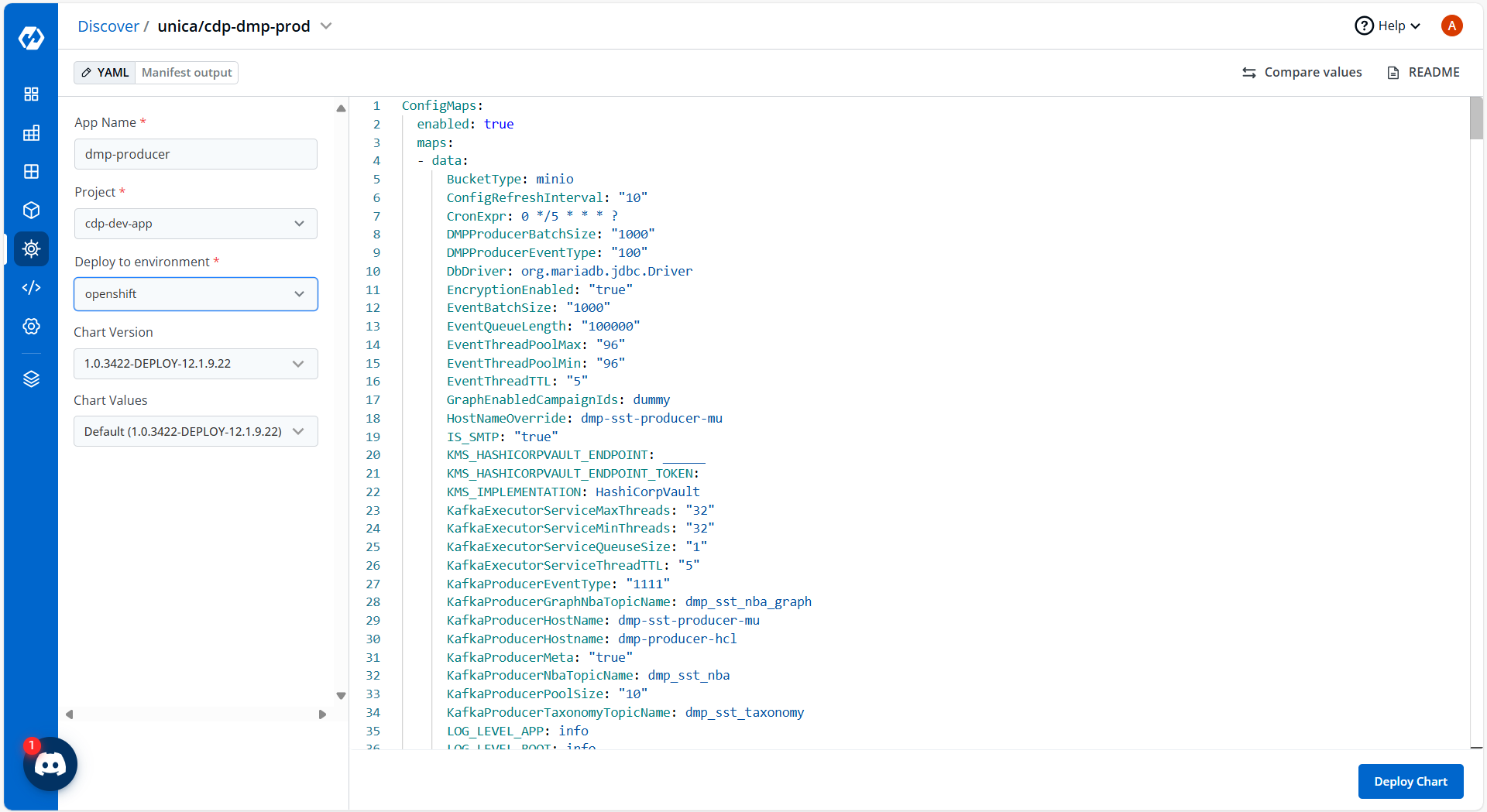 - Now, configure and deploy the CDP DMP Producer charts.