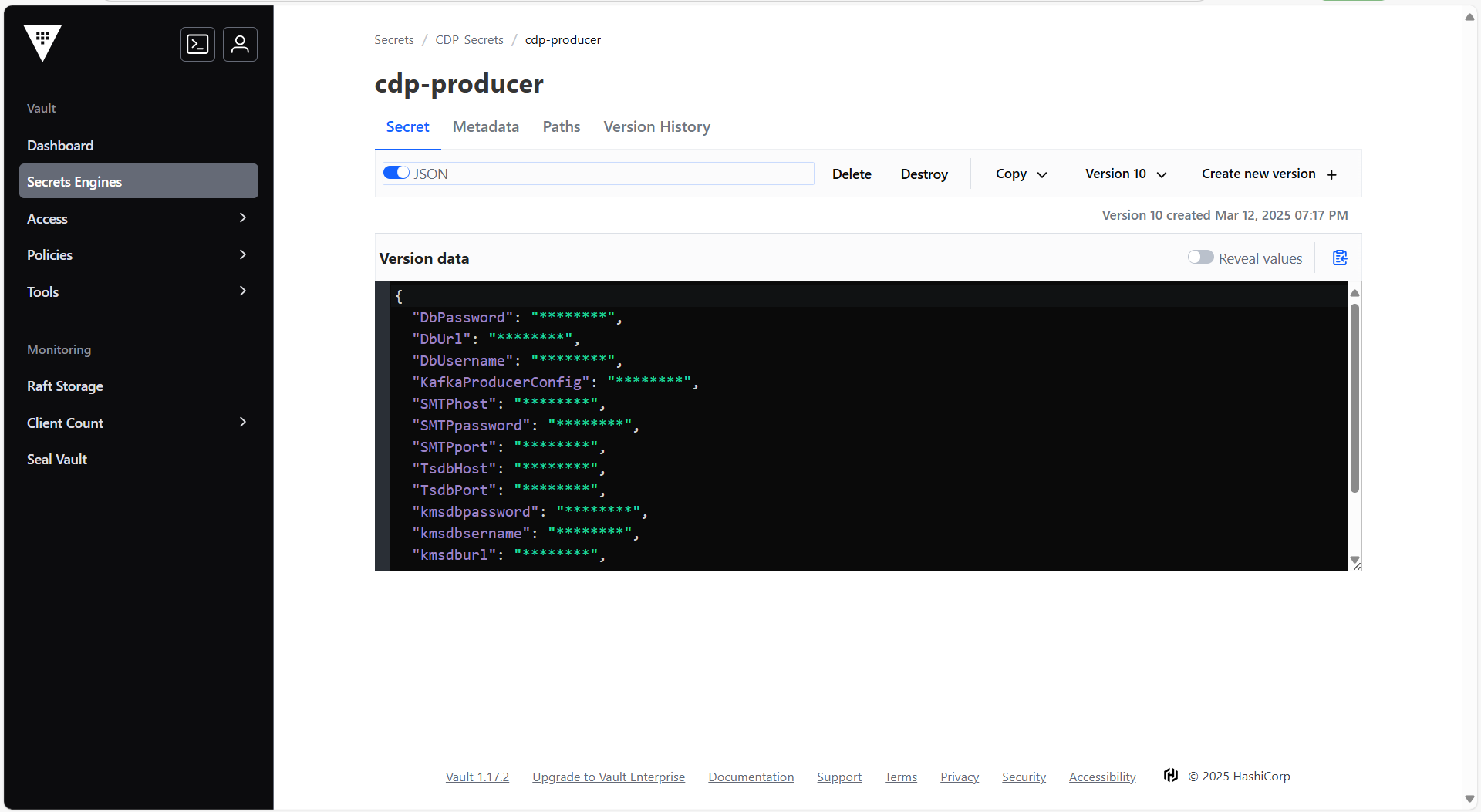 To create the cdp-producer secret in the HashiCorp Vault, follow the steps below: