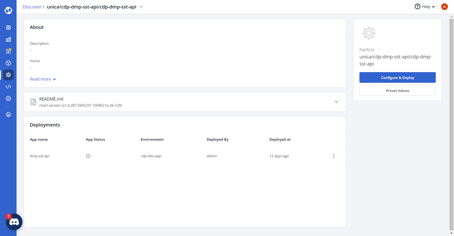 - Navigate to the Devtron Chart Store, and select the cdp-dmp-sst-api chart