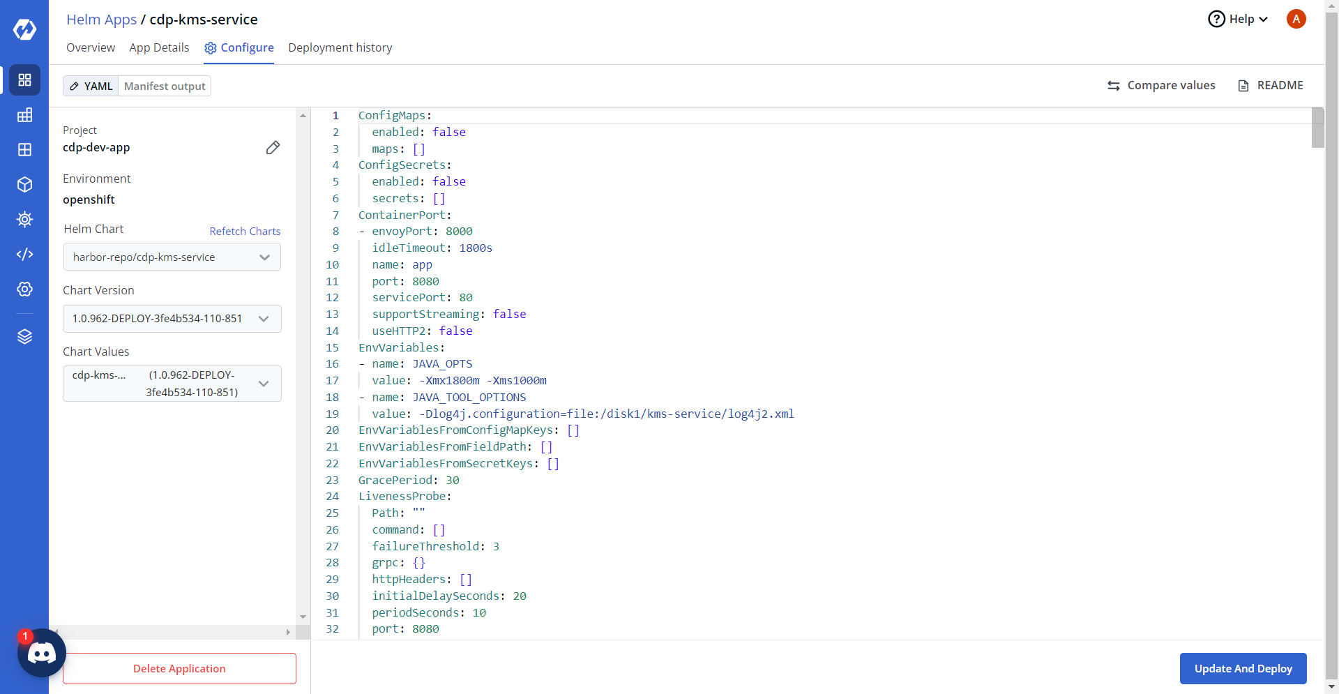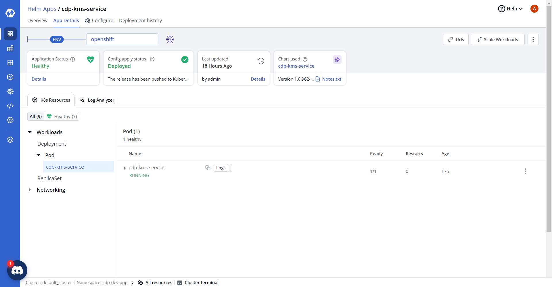 This section provides detailed instructions on how to deploy HCL CDP KMS Service using the Devtron in the OpenShift.