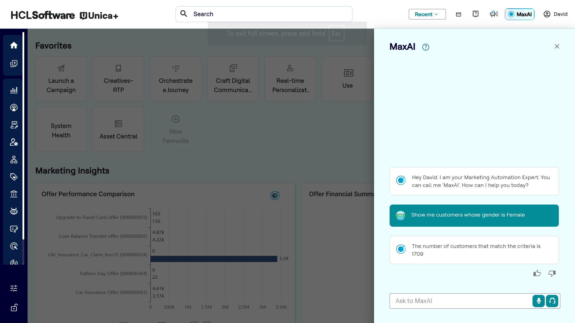 - In the Unica+ platform, click the MaxAI icon. As a result, the MaxAI chat window will open.