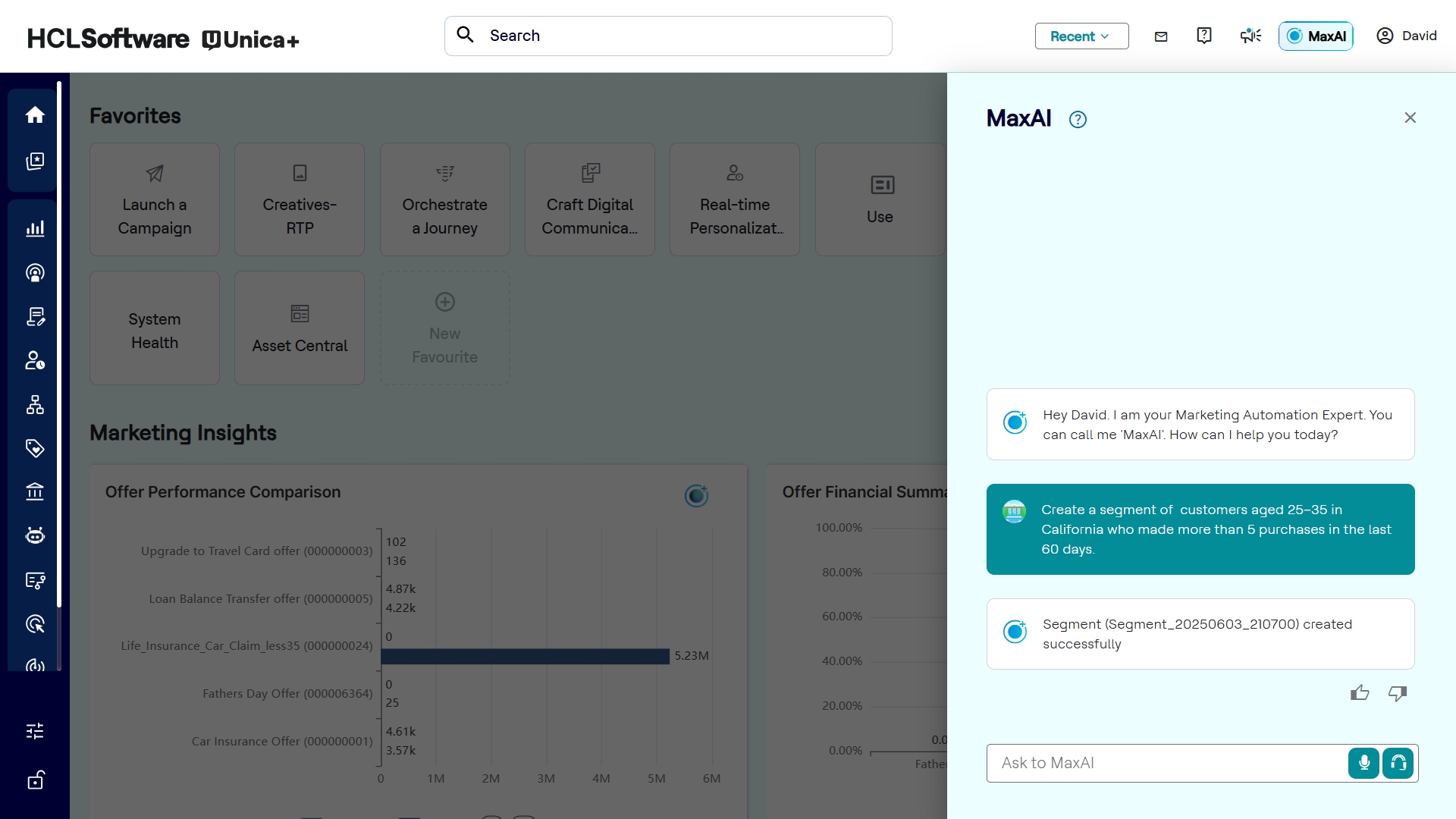 You can use the Agentic segment within the Unica Plus to create CDP segments or retrive the count of customers matching specific criteria without requiring SQL skills or deep knowledge of data schemas.