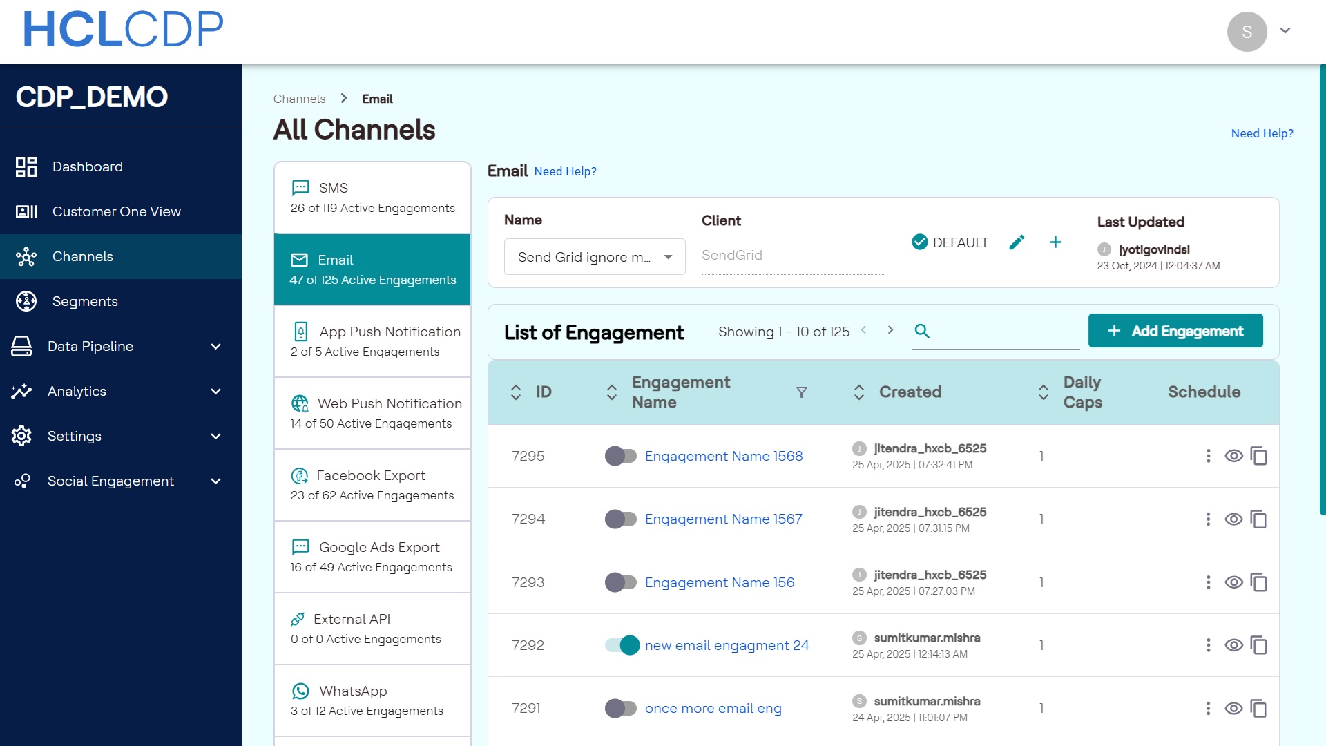 HCL CDP enables you to configure multiple ESPs, allowing flexibility for various teams or use cases within your organization. For example, one team might use a specific ESP for customer notifications, while another team uses a different ESP for marketing newsletters.