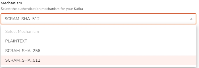 PLAINTEXTandSASL_PLAINTEX. If usingSASL_PLAINTEXT, select one of the three available authentication mechanisms.
