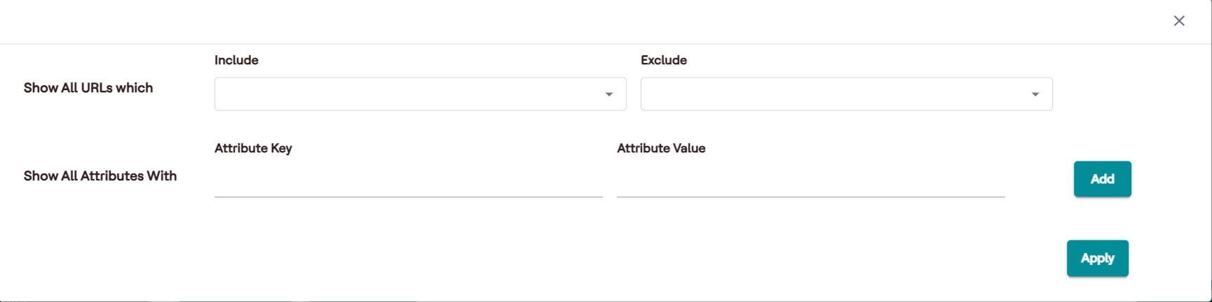 - Show All Attributes With: Add attribute keys and values to filter data.