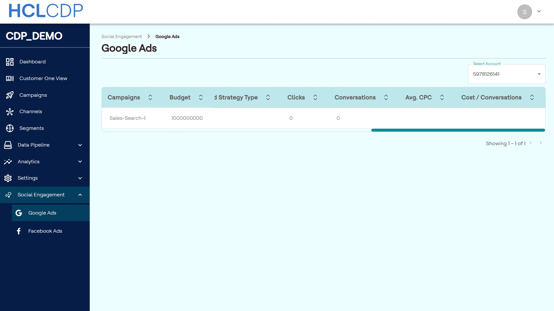 The Google Ads page provides a detailed breakdown of key campaign metrics across connected Google Ads accounts. This page is designed to help marketers and analysts monitor ad efficiency, optimize budgets, and track campaign effectiveness in real time.