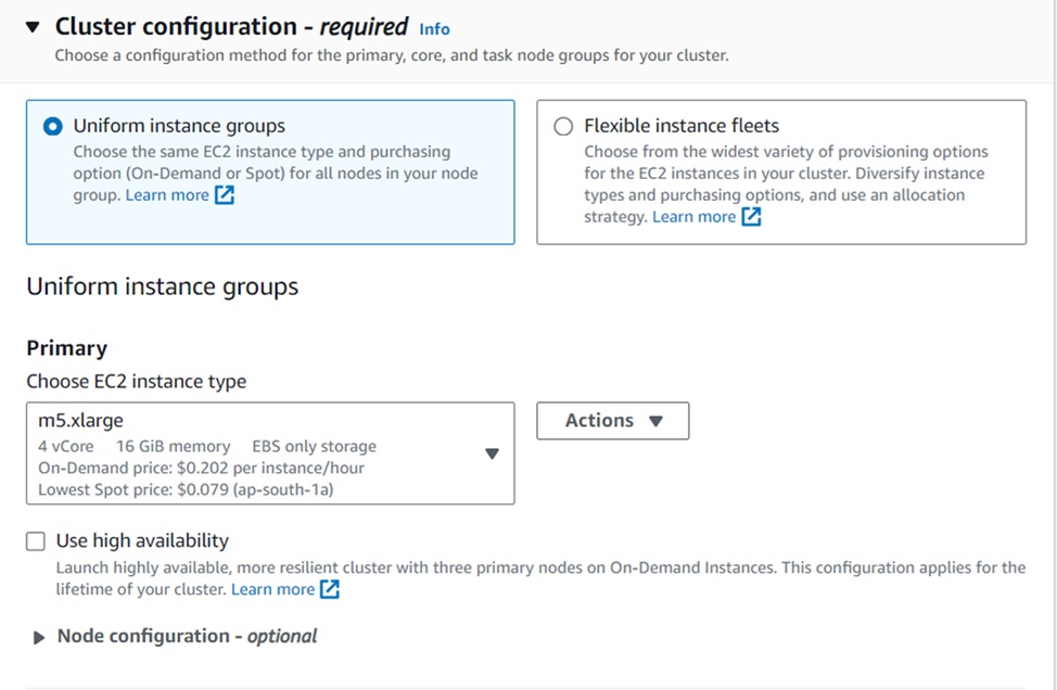 option, and for the Uniform instance groups, select primary and core options.