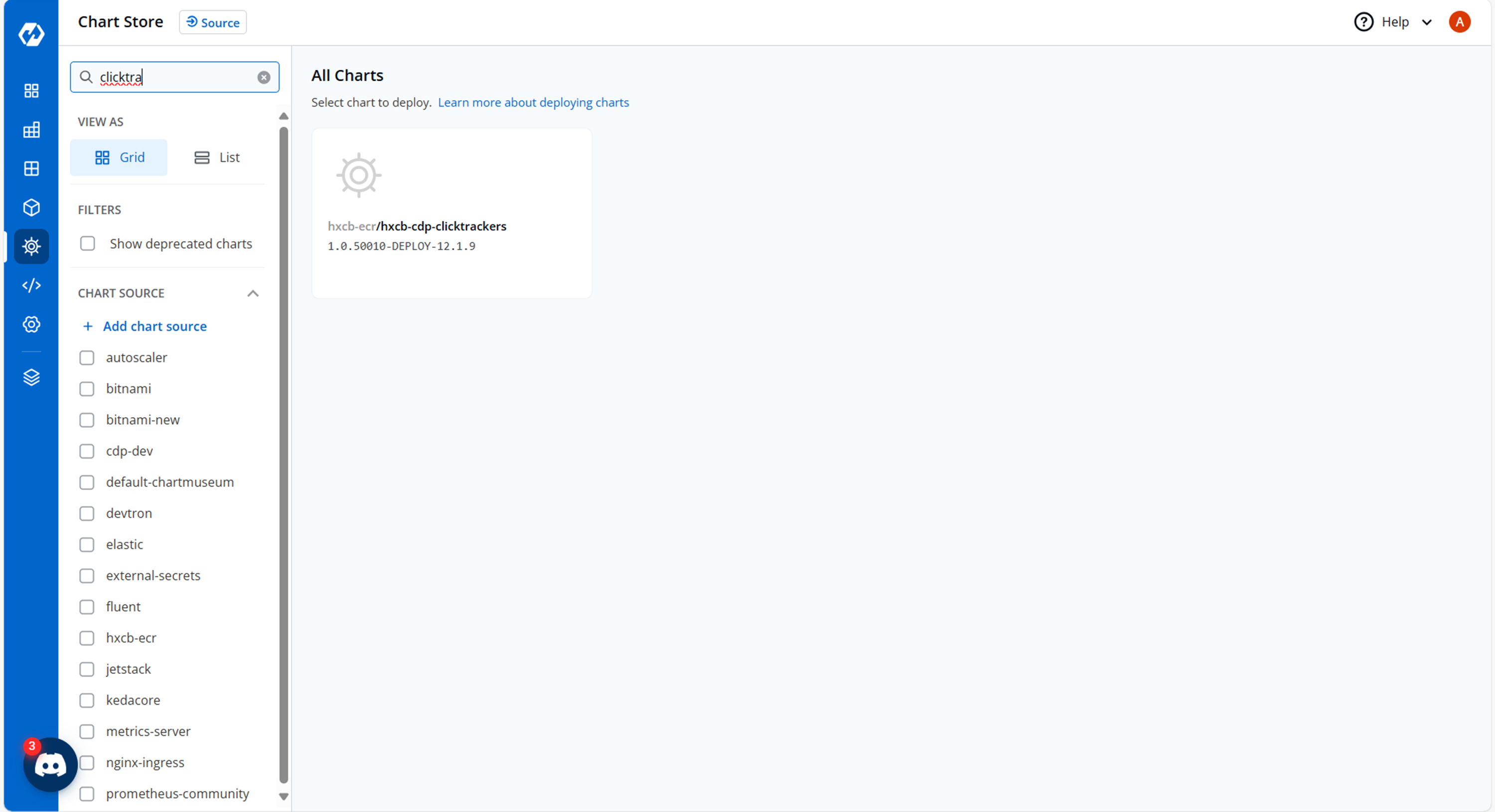 - Navigate to the Devtron Chart Store, and select the cdp-clicktrackers chart to