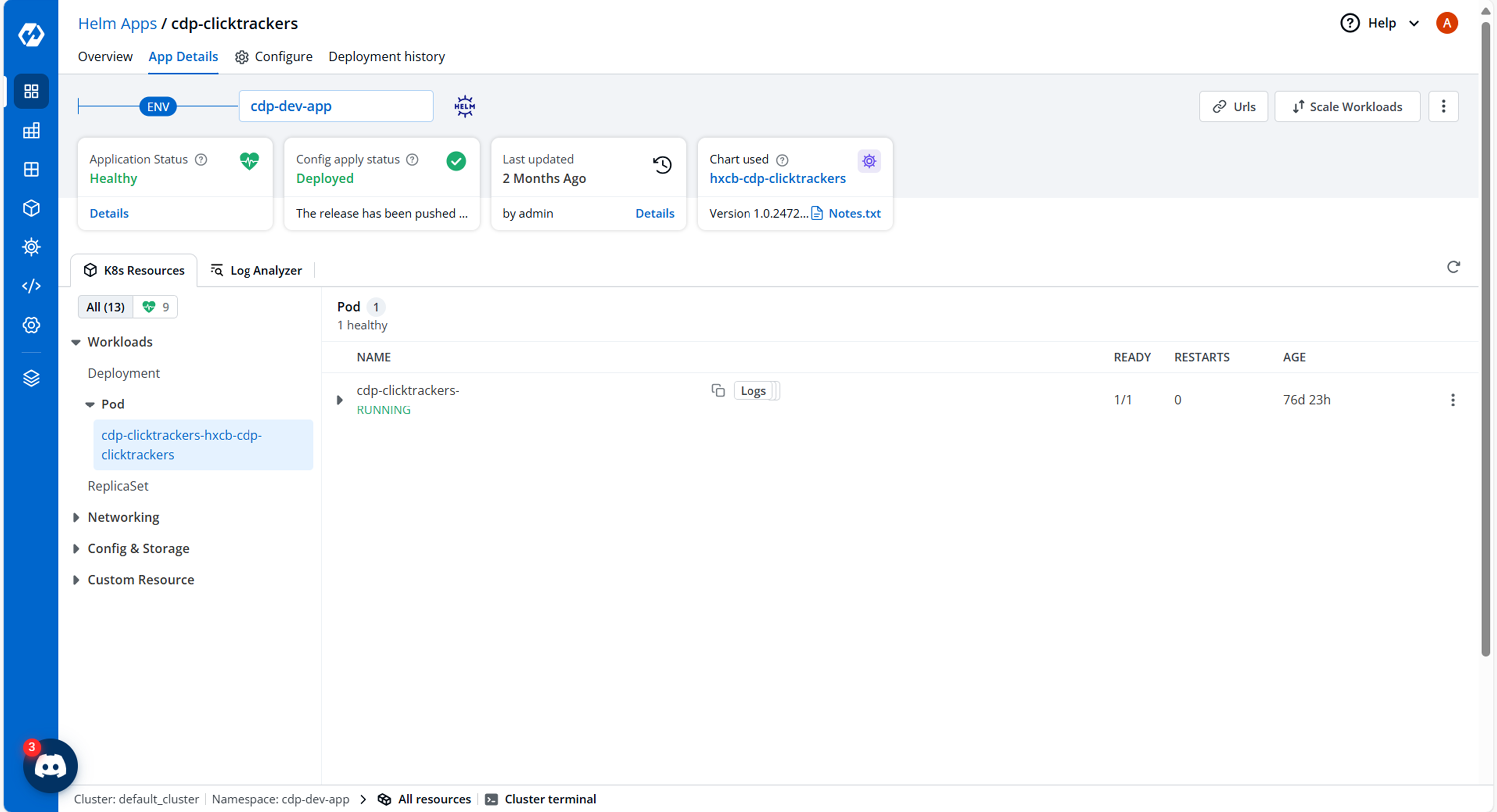 - Now, configure and deploy the cdp-clicktrackers charts.