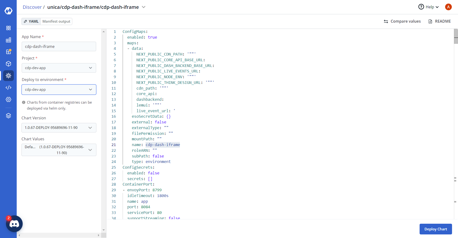 This section provides detailed instructions on how to deploy HCL CDP Dash IFrame using the Devtron in the OpenShift.
