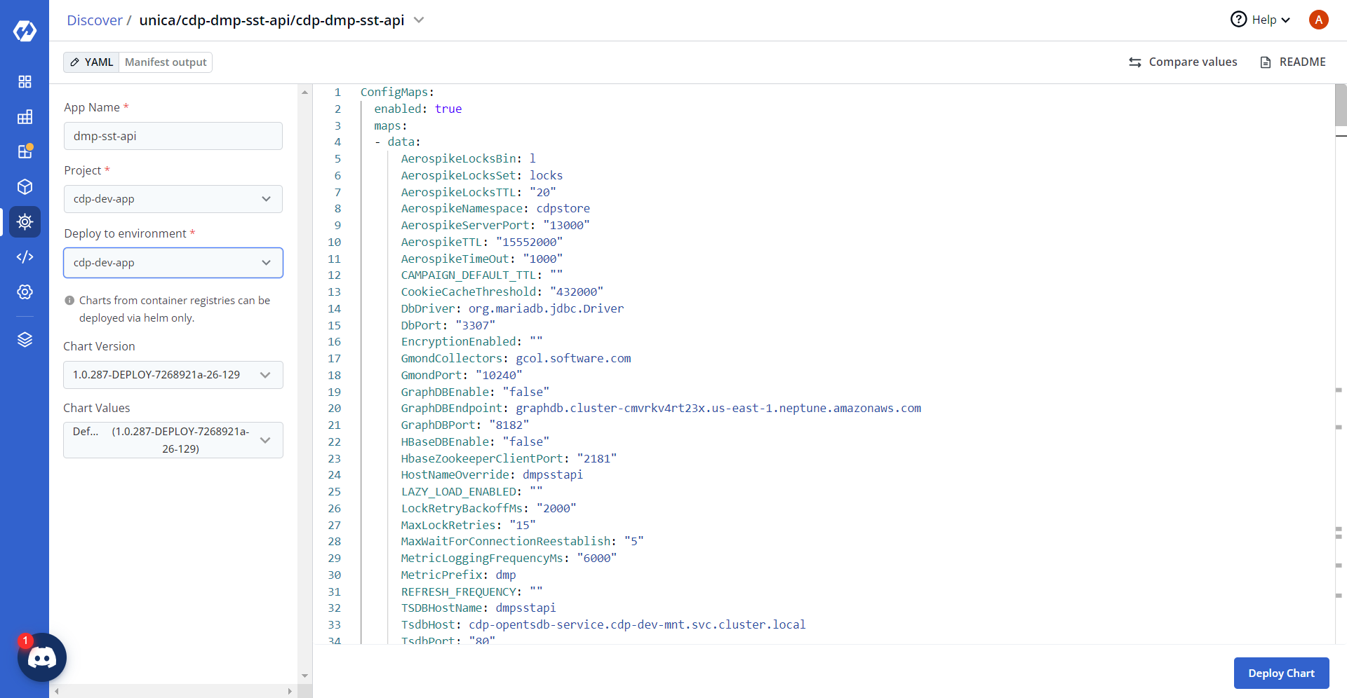- Now, configure and deploy the CDP DMP SST API charts.