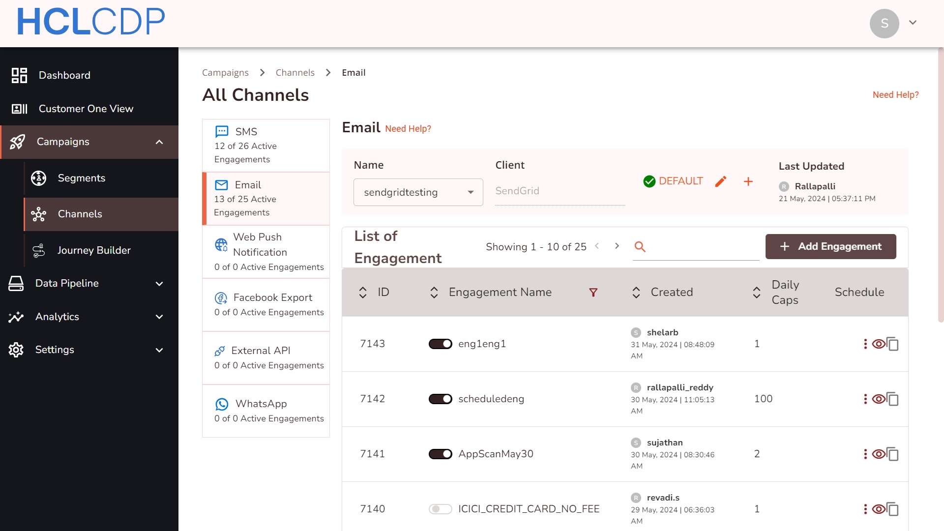HCL CDP enables you to configure multiple ESPs, allowing flexibility for various teams or use cases within your organization. For example, one team might use a specific ESP for customer notifications, while another team uses a different ESP for marketing newsletters.