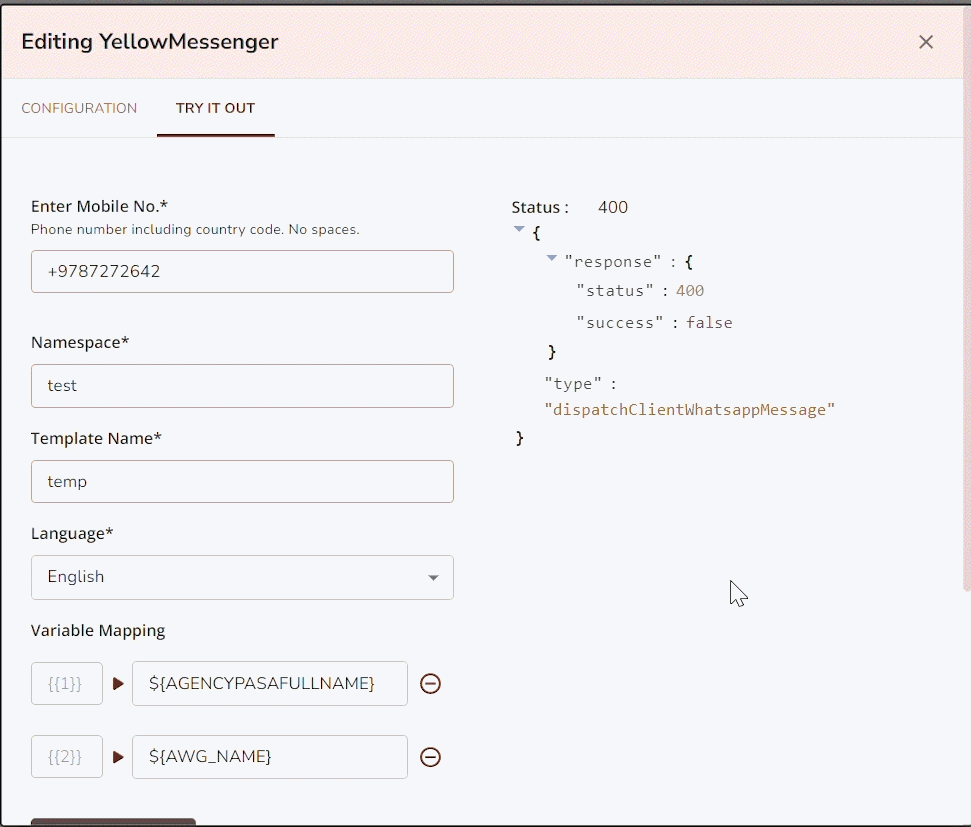 Use Try It Out to test the configuration. To try it out, follow the steps below: