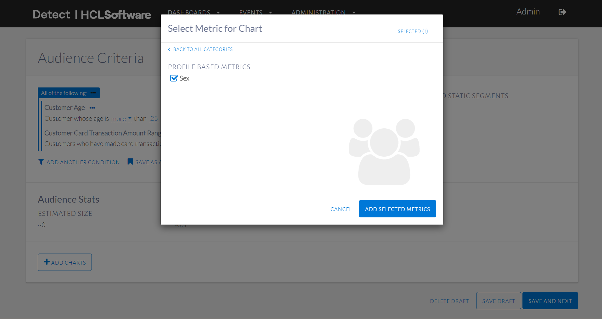- In the Audience Criteria page, click Add Charts.