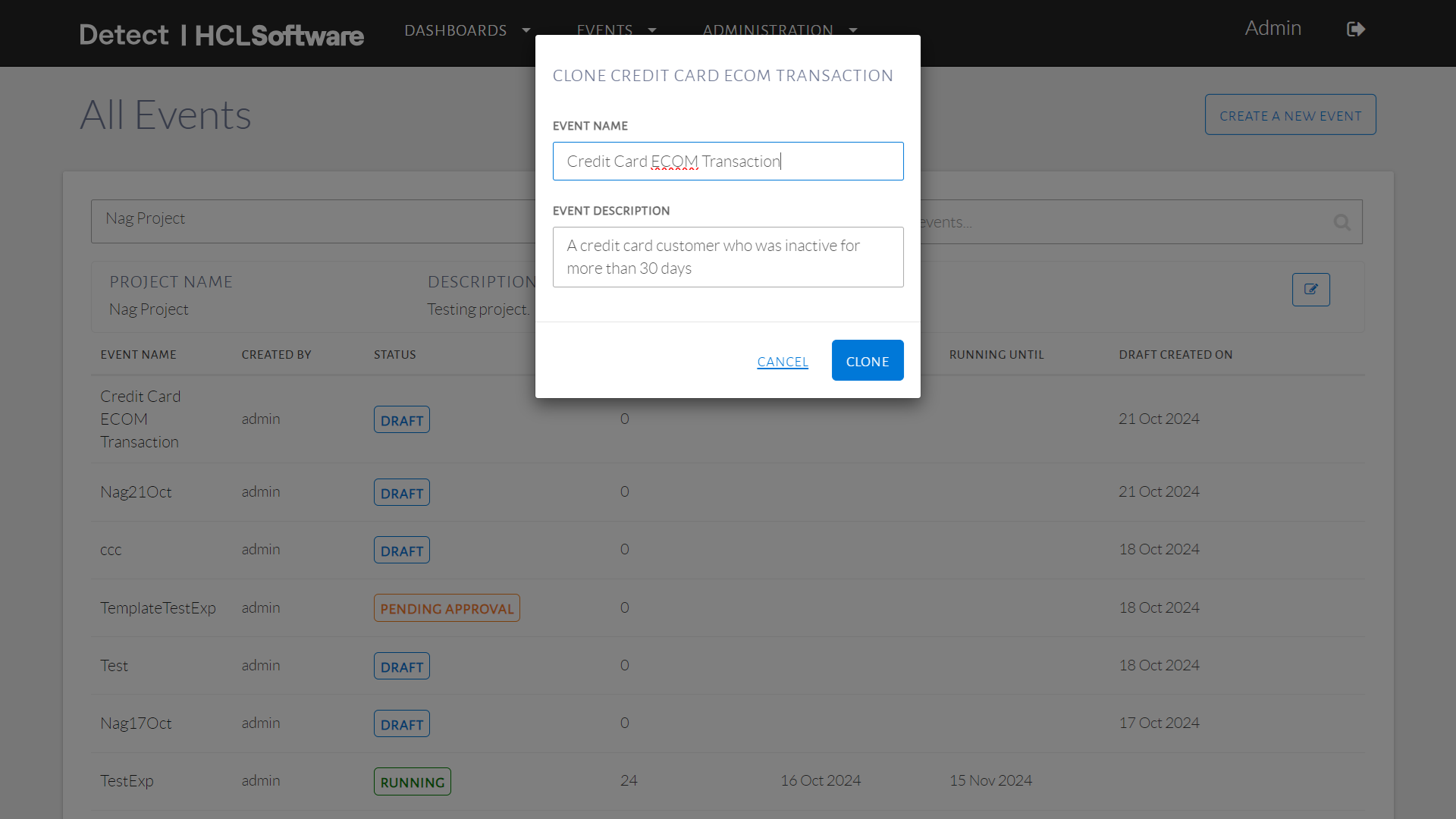 Existing events of any status can be copied by a user to edit as their own. Each event that is copied will be available as a draft for the user to edit before submitting for approval/deploying.