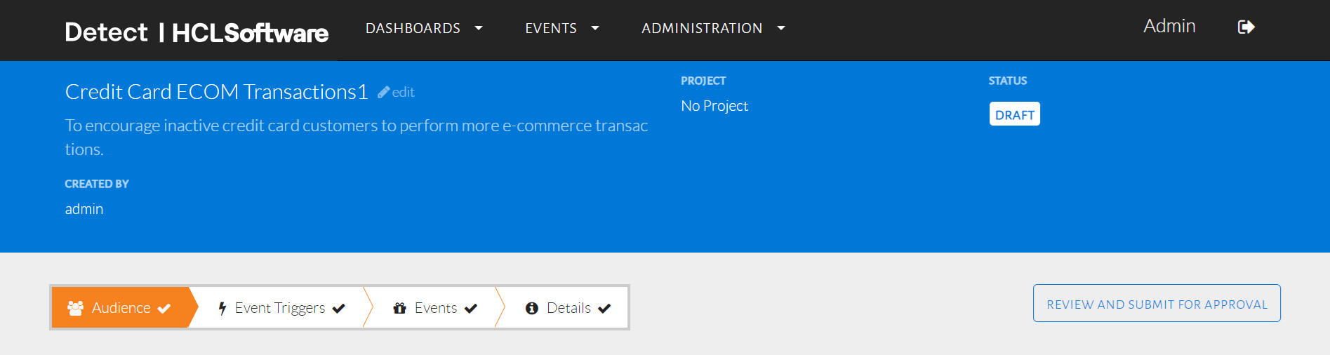 The Event Name needs to be unique so the event can be cloned. An error message will appear if the name is not unique. Select the running event to clone and edit the name as shown in the image below as we can now edit the event to target Payment based customer inactivity in the audience while keeping all other event configurations the same.