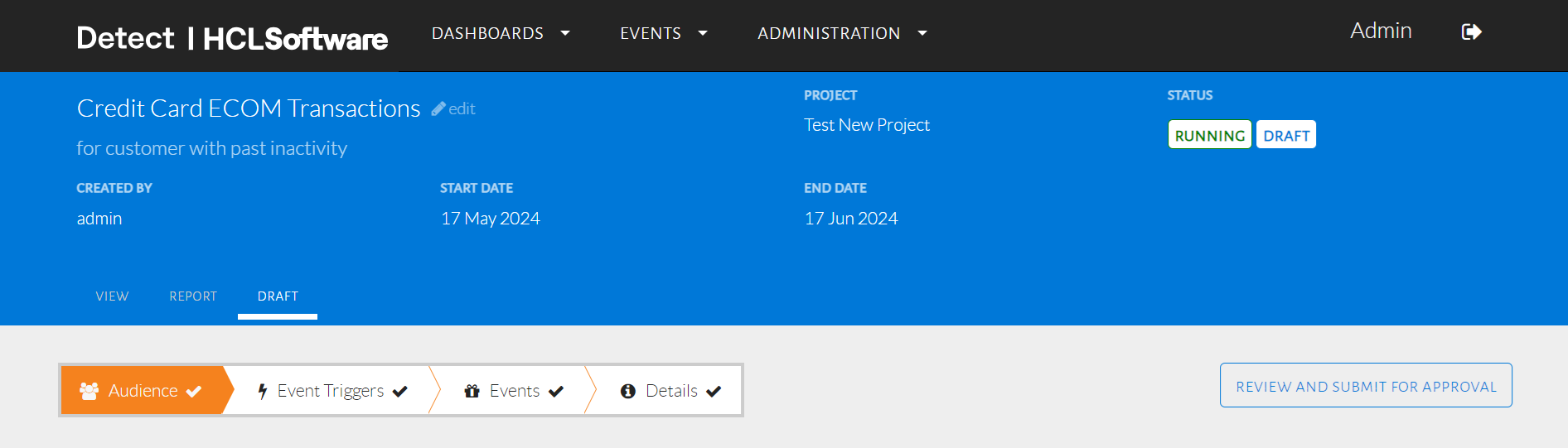 Making any changes to the draft follows the same steps as creating an event and deploying it (based on the user permissions) as mentioned above. If the edited event is still running, deploying the draft version will replace the current running version.