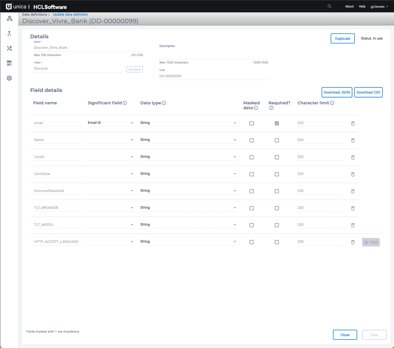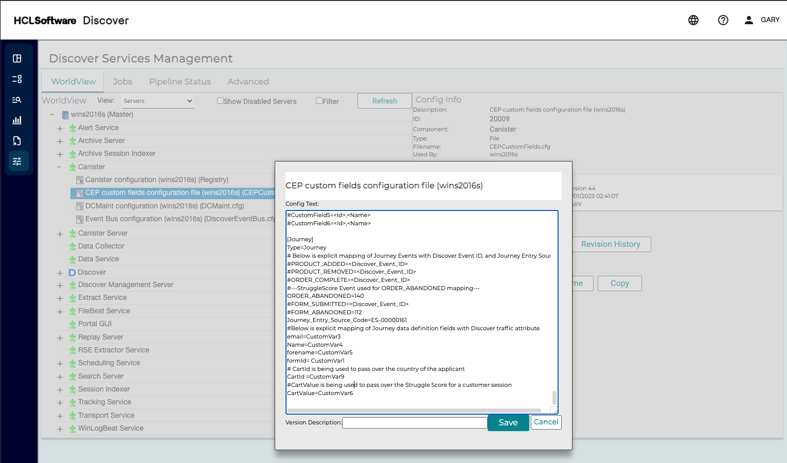 Configure CEP for Unica Journey by modifying the Discover CEPCustomFields.cfg file