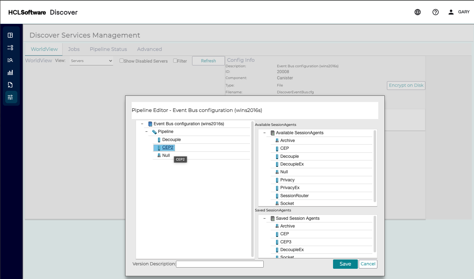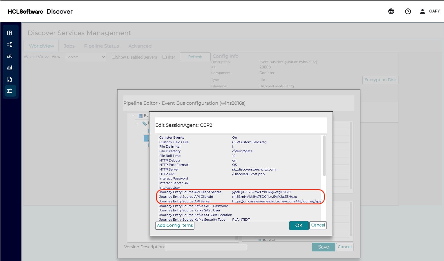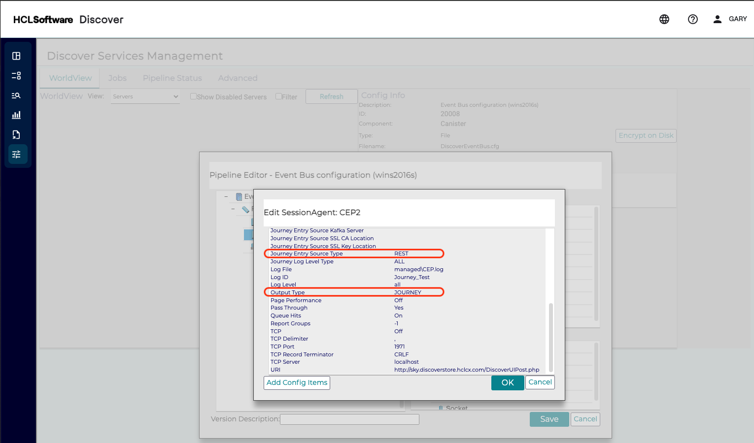 Once in the pipeline click on the new CEP session agent to bring up the configuration