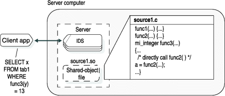 in the same shared-object file, source1.so. Figure 1. Calling a UDR directly from