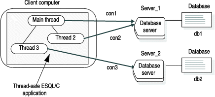 The major advantage of a thread-safe application is that each thread can have one active connection to a database server. Use the CONNECT statement to establish a connection and make it active. Use the SET CONNECTION statement (with no DORMANT clause) to make a dormant connection active.