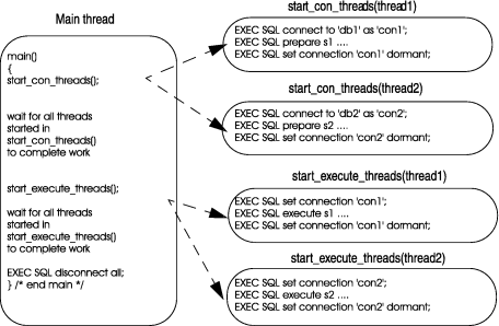 When the connection is dormant, any thread can access the dormant connection through the SET CONNECTION statement. When the thread makes this connection active, it can send the corresponding prepared statement or statements to the database server for execution.