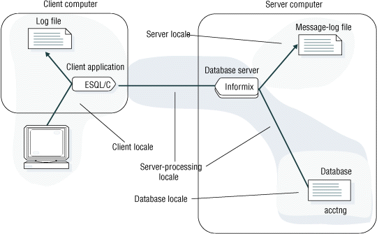 When the database server begins execution, it initializes the server-processing locale to the default locale. When a client application requests a connection, the database server must redetermine the server-processing locale to include the client and database locales. The database server uses the server-processing locale to obtain locale information that it needs when it transfers data between the client system and the database.