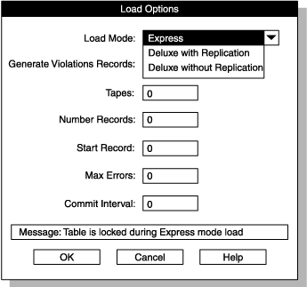 The has three modes of operation: express, deluxe with replication, and deluxe without replication. The express mode is optimized for speed and the deluxe mode provides the full functionality of SQL inserts as data is loaded. For a detailed comparison of these modes, see Manage the High-Performance Loader. This example uses the express mode.
