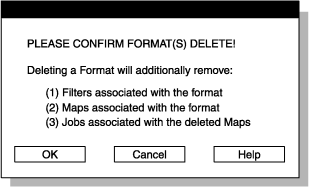 If you click OK, the format is deleted and any associated maps, filters, and jobs.