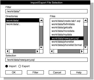 You can use the Import/Export File Selection window to import a query that you prepared outside of the .