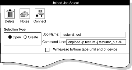 of an Unload Job Select window. The Command