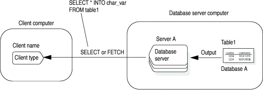 The database server calls the output function when it sends the external representation of an opaque type to a client application. For example, when a client application issues a SELECT or FETCH statement, the application can save the data of an opaque type that it receives from the database server in a character host variable. The database server calls the output function to convert the internal representation that is stored on disk to the external representation that the character host variable requires.