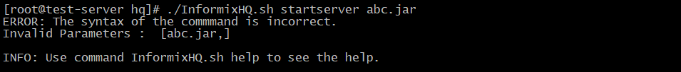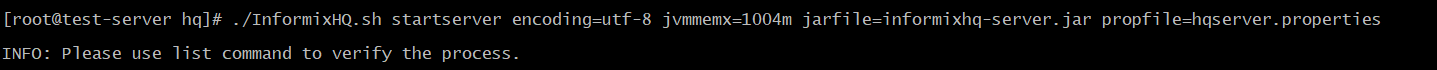 It will start INFORMIXHQ Server with default values for all the parameters including jar file