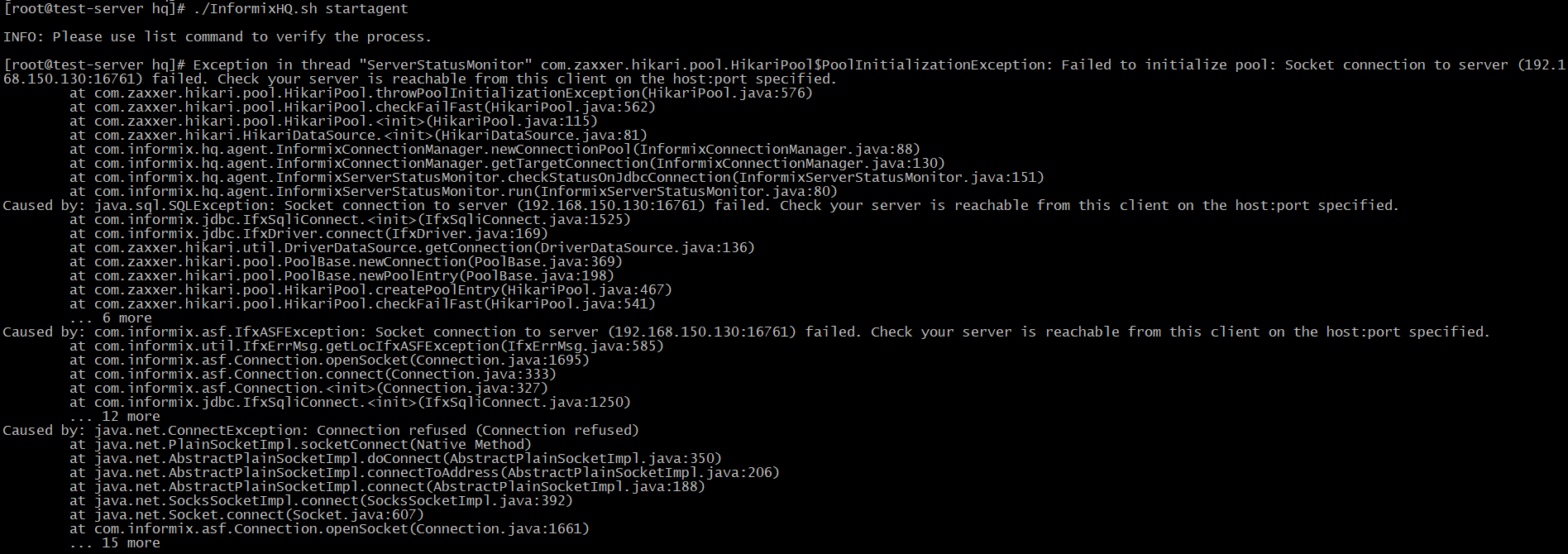 In such case, ensure, server added in InformixHQ server is configured correctly and is