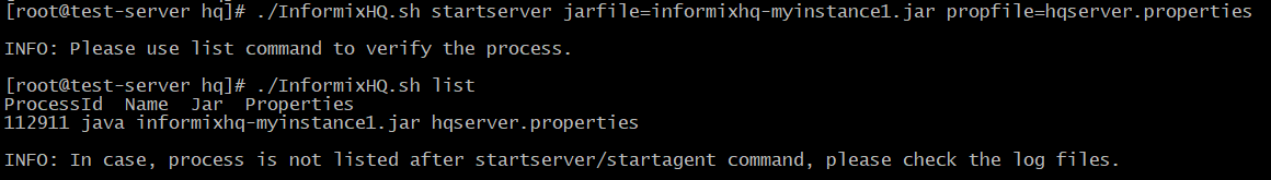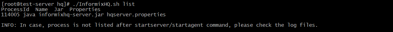 Stop the InformixHQ server or agent by providing processID to stop command. It will stop