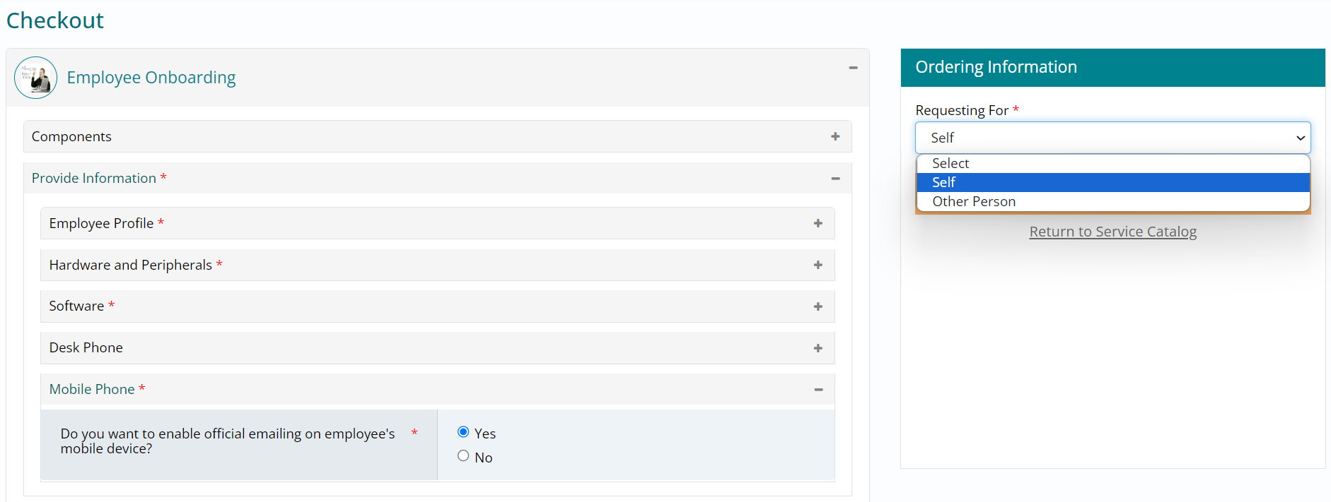 - Under the Ordering Information section towards the right of your screen, select Self to place the order for yourself.
