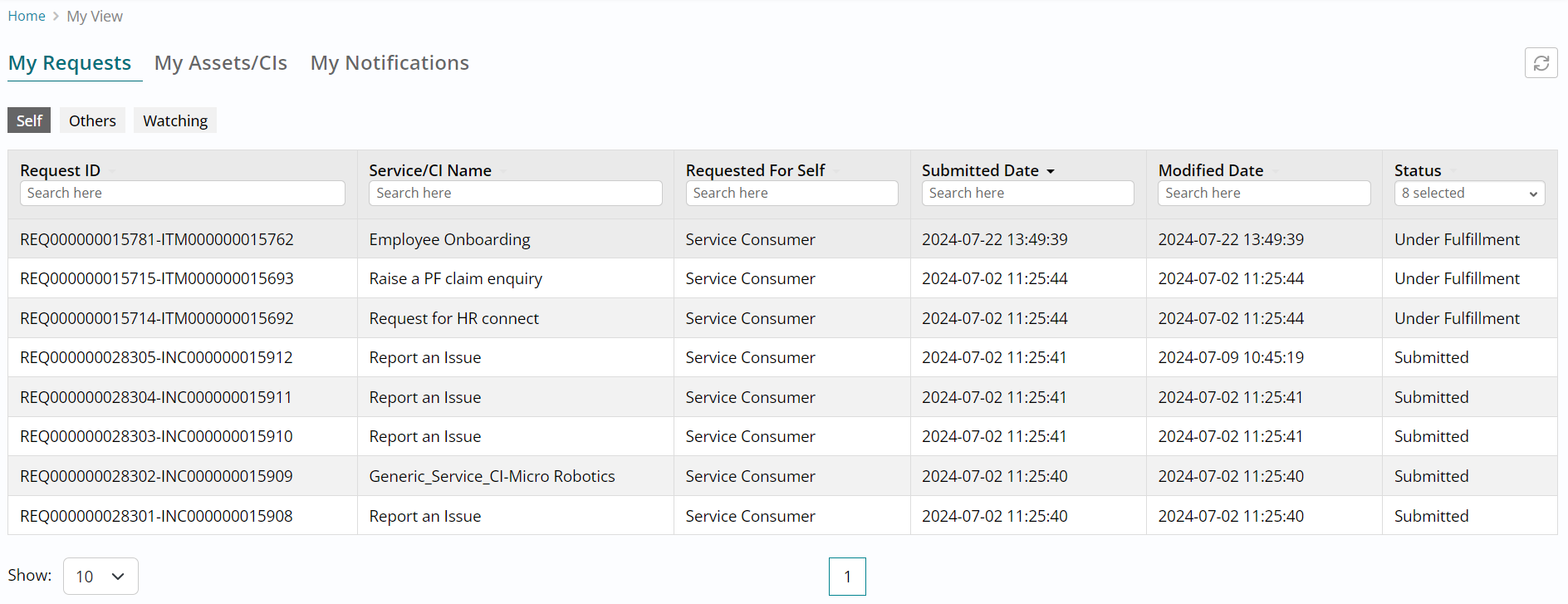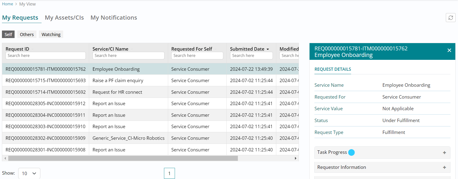 - Upon placing the order / request, you will automatically be navigated to the My Requests section wherein you can view the latest request on top of the list view.