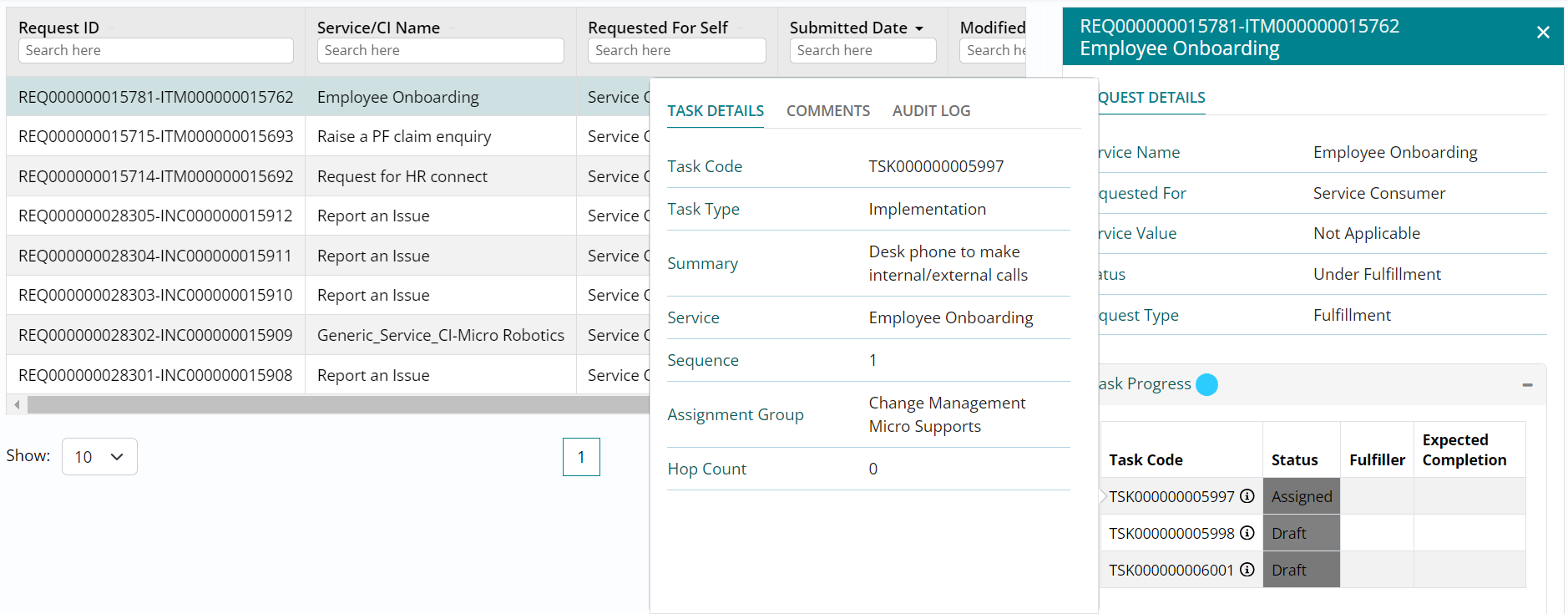 - Scroll upwards and expand the Task Progress section to view the pre-configured fulfillment tasks that are a part of this request.