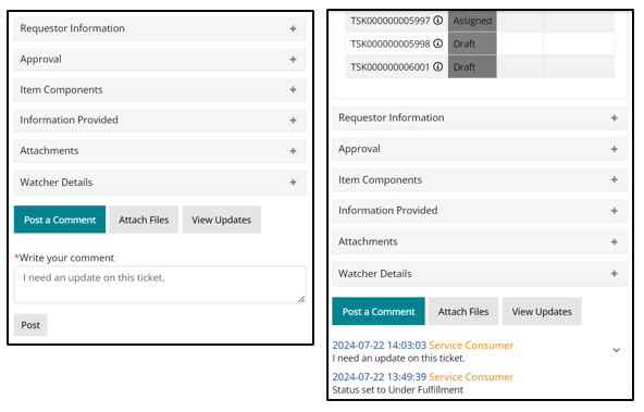 - Left image - Scroll to the bottom of the page and click on Post a Comment followed by typing a comment and clicking on Post.