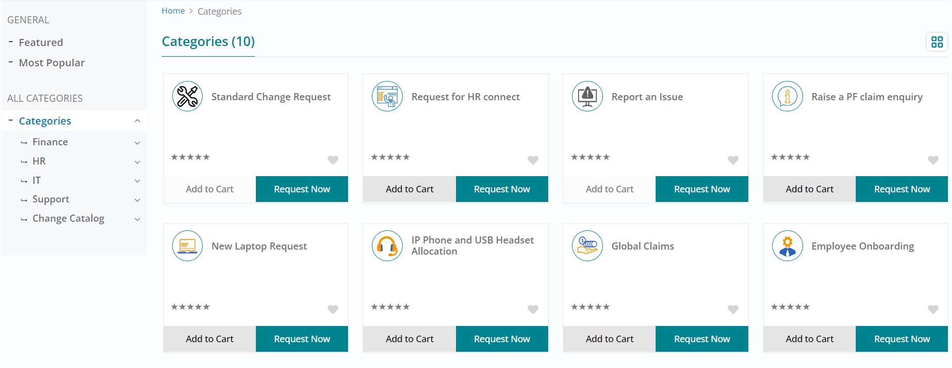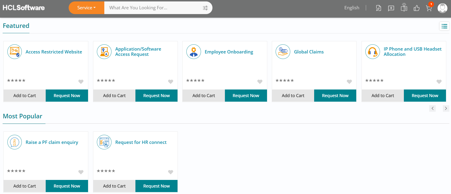- Upon logging in, you will see the consumer homepage of HCL BigFix Service Management.