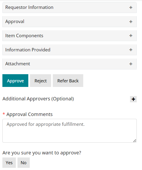 - Click on Approve and type in your approval comments before clicking on Yes to provide