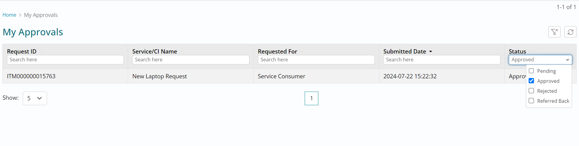 - You can filter the Status column and choose to view the request you just approved.
