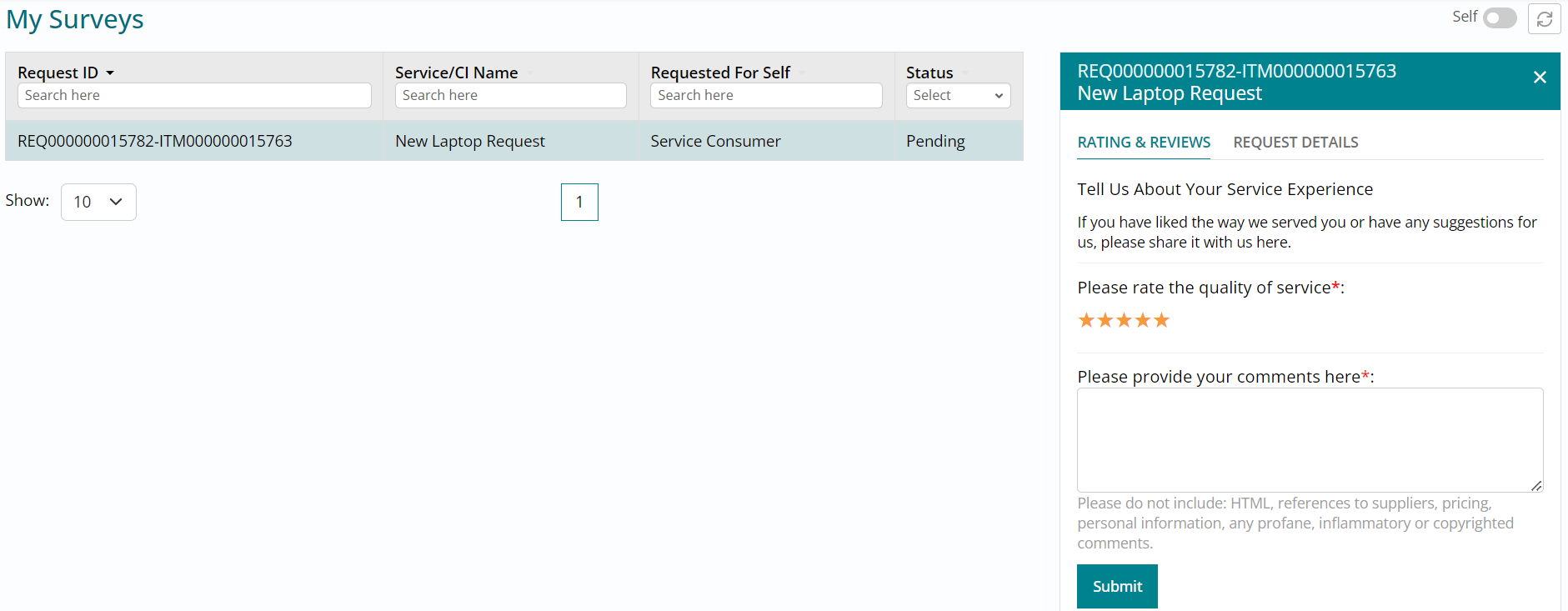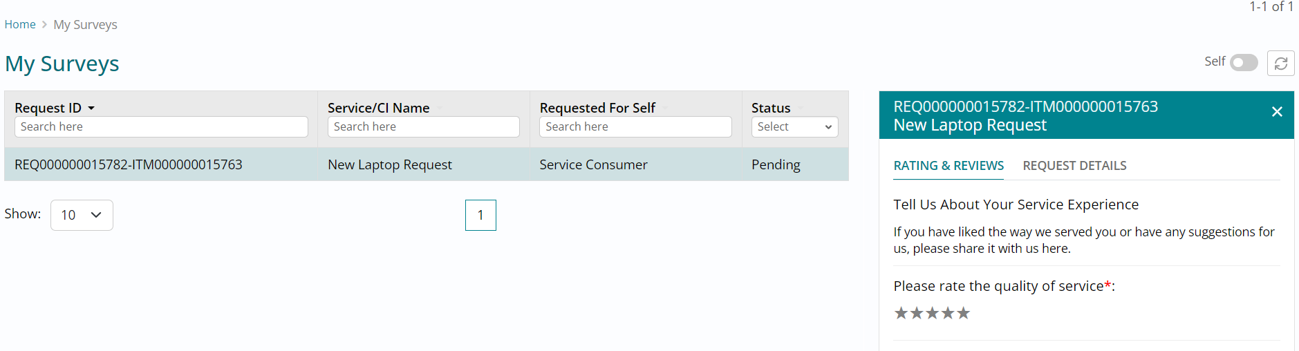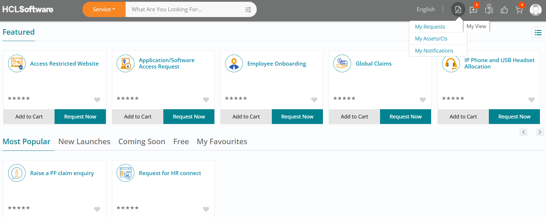 an option to click and view the requests which you have raised for yourself or on behalf of