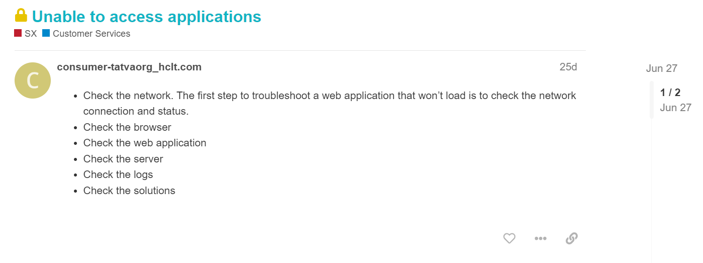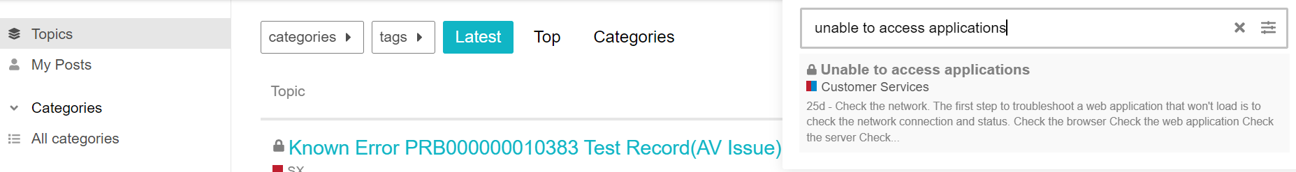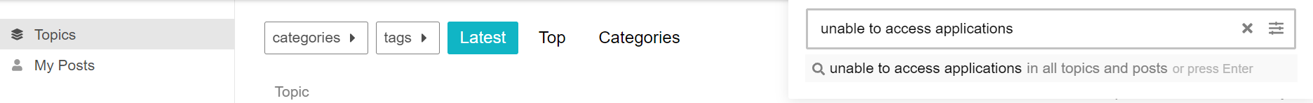 - Click on Log In followed by typing ‘unable to access applications’ in the search bar on
