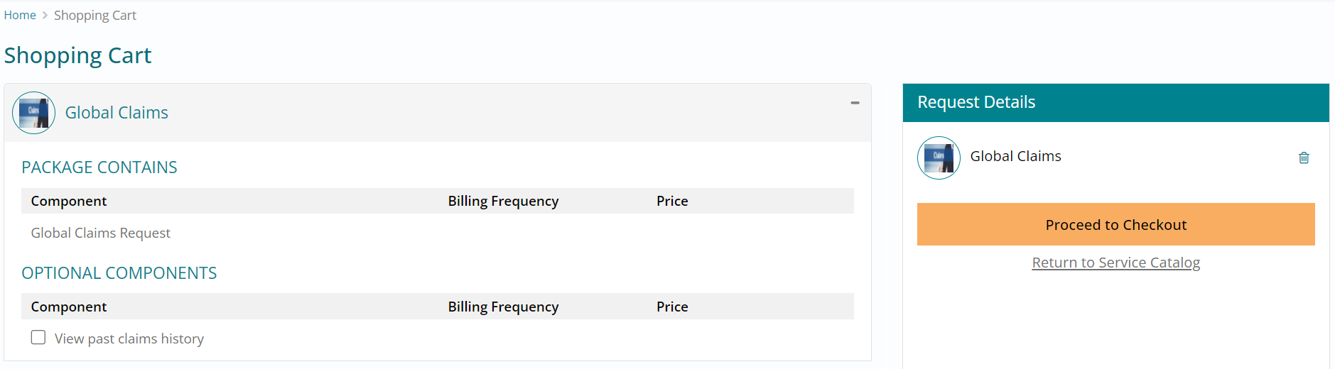 - Click on the Add to Cart button on the Global Claims offering under Featured section on