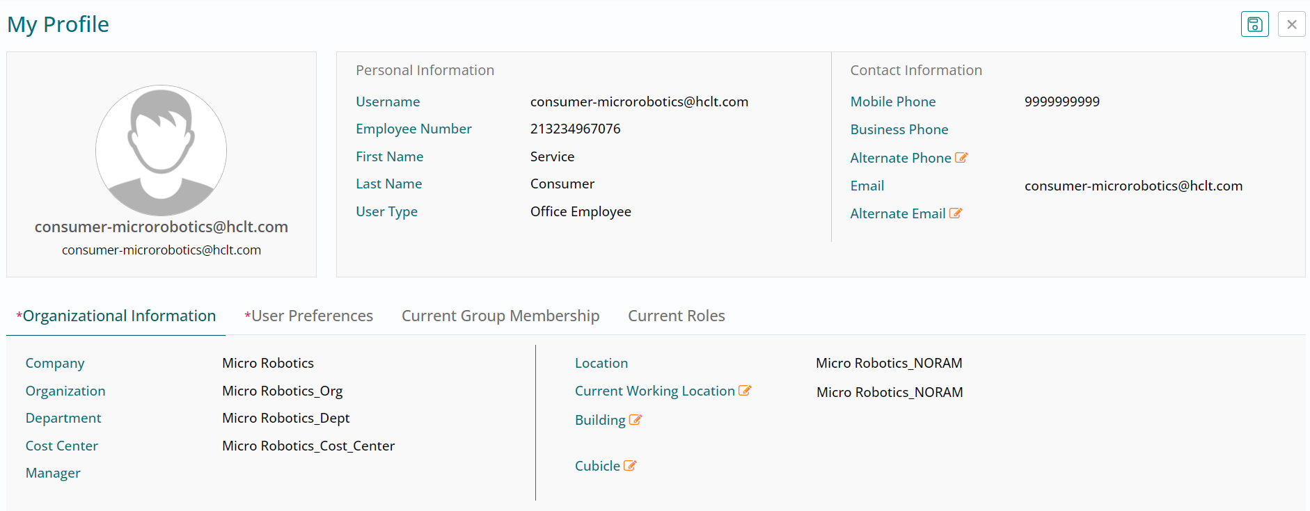- You will land on the Organizational Information section, wherein you can view user organization details, personal and contact information. You also have the option of editing and updating a few details if needed.