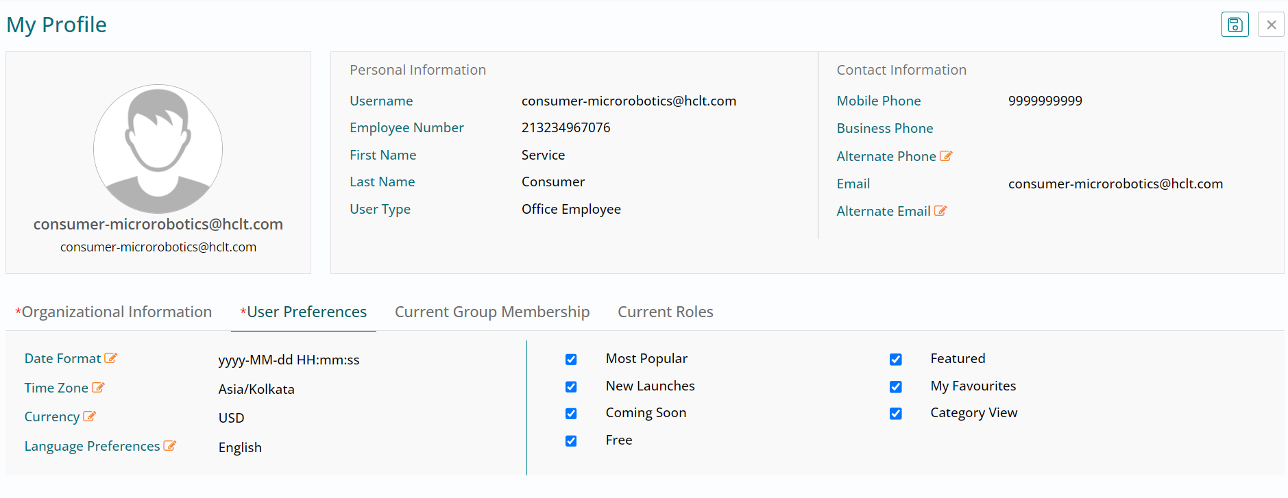 - In the User Preferences section, you can view several options wherein you can update details such as date format, time zone, currency and language preferences to name a few.