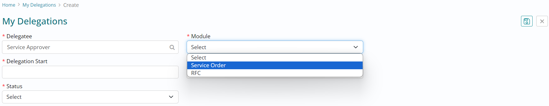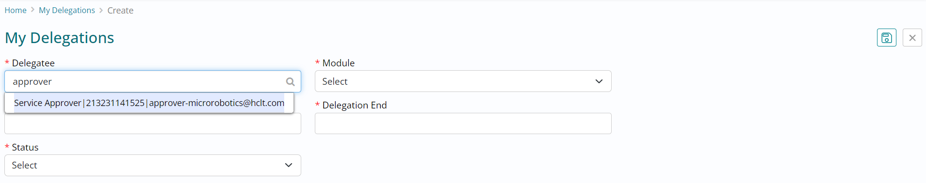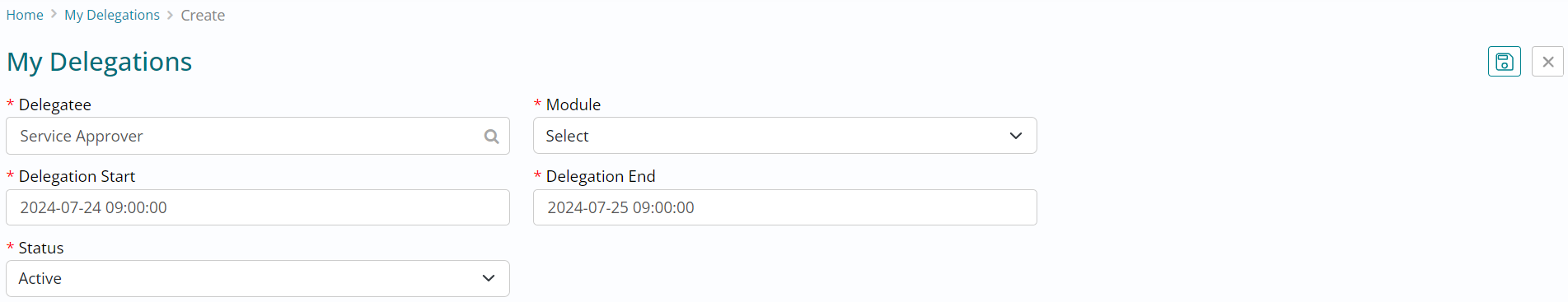- Choose the delegation start and end date and time followed by selecting status as Active.